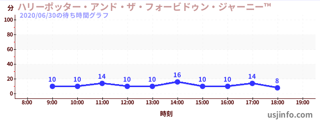 • ハリーポッター・アンド・ザ・フォービドゥン・ジャーニー™$B$N(B2020年06月30日の待ち時間