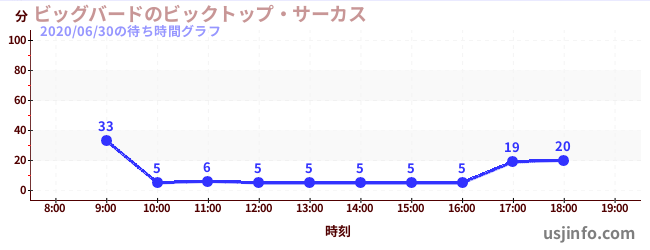 • ビッグバードのビックトップ・サーカス$B$N(B2020年06月30日の待ち時間