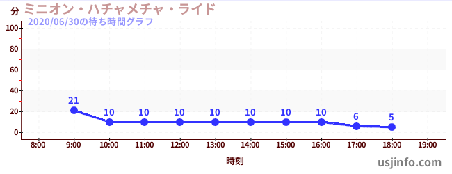 • ミニオン・ハチャメチャ・ライド$B$N(B2020年06月30日の待ち時間