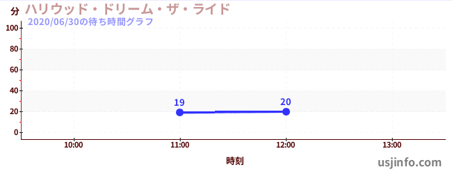 • ハリウッド・ドリーム・ザ・ライド$B$N(B2020年06月30日の待ち時間
