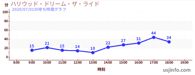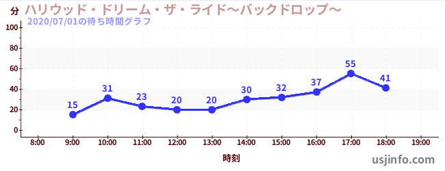 • ハリウッド・ドリーム・ザ・ライド〜バックドロップ〜$B$N(B2020年07月01日の待ち時間