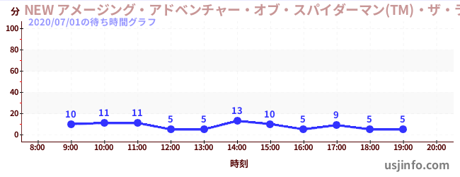 • NEW アメージング・アドベンチャー・オブ・スパイダーマン(TM)・ザ・ライド 4K3D$B$N(B2020年07月01日の待ち時間