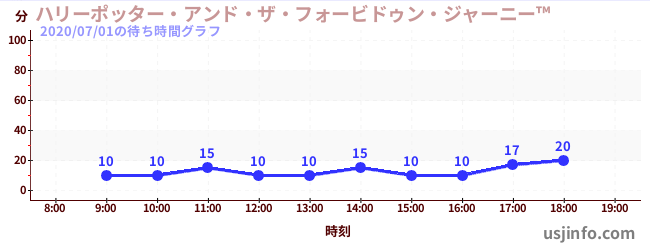 • ハリーポッター・アンド・ザ・フォービドゥン・ジャーニー™$B$N(B2020年07月01日の待ち時間