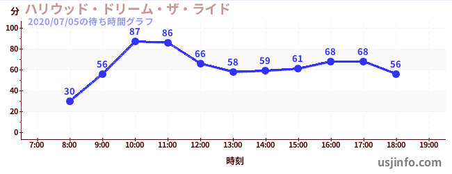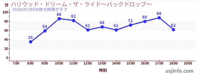 • ハリウッド・ドリーム・ザ・ライド〜バックドロップ〜$B$N(B2020年07月05日の待ち時間