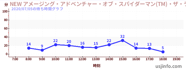 • NEW アメージング・アドベンチャー・オブ・スパイダーマン(TM)・ザ・ライド 4K3D$B$N(B2020年07月05日の待ち時間