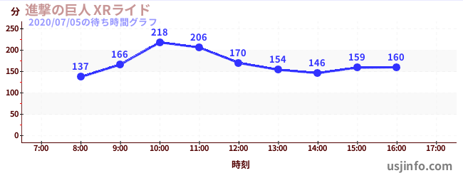 • 進撃の巨人 XRライド$B$N(B2020年07月05日の待ち時間