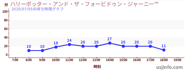 • ハリーポッター・アンド・ザ・フォービドゥン・ジャーニー™$B$N(B2020年07月05日の待ち時間