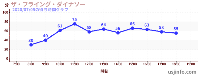 • ザ・フライング・ダイナソー$B$N(B2020年07月05日の待ち時間