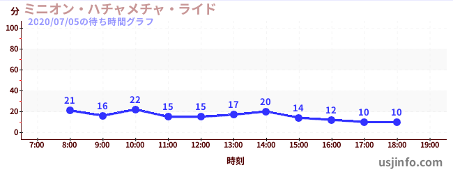 • ミニオン・ハチャメチャ・ライド$B$N(B2020年07月05日の待ち時間