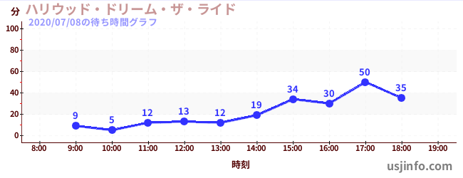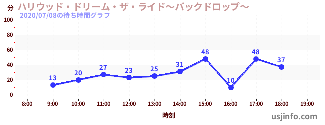 • ハリウッド・ドリーム・ザ・ライド〜バックドロップ〜$B$N(B2020年07月08日の待ち時間