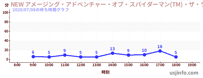 • NEW アメージング・アドベンチャー・オブ・スパイダーマン(TM)・ザ・ライド 4K3D$B$N(B2020年07月08日の待ち時間