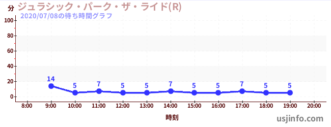 • ジュラシック・パーク・ザ・ライド(R)$B$N(B2020年07月08日の待ち時間