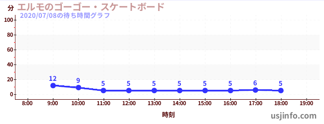 • エルモのゴーゴー・スケートボード$B$N(B2020年07月08日の待ち時間
