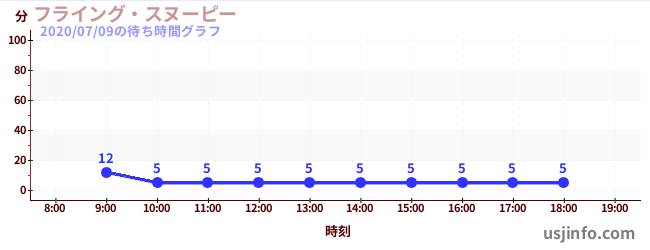• フライング・スヌーピー$B$N(B2020年07月09日の待ち時間
