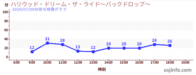 • ハリウッド・ドリーム・ザ・ライド〜バックドロップ〜$B$N(B2020年07月09日の待ち時間