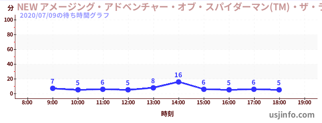 • NEW アメージング・アドベンチャー・オブ・スパイダーマン(TM)・ザ・ライド 4K3D$B$N(B2020年07月09日の待ち時間