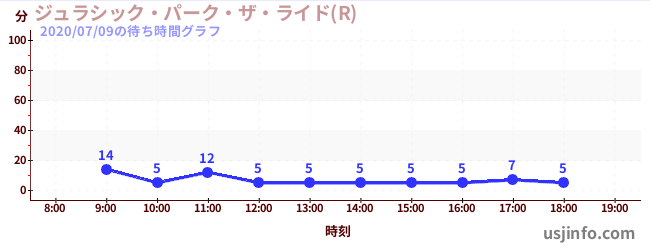 • ジュラシック・パーク・ザ・ライド(R)$B$N(B2020年07月09日の待ち時間