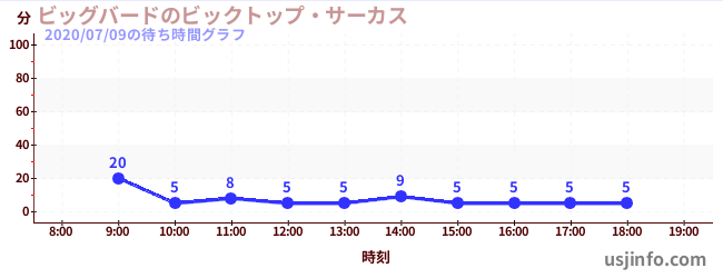 • ビッグバードのビックトップ・サーカス$B$N(B2020年07月09日の待ち時間
