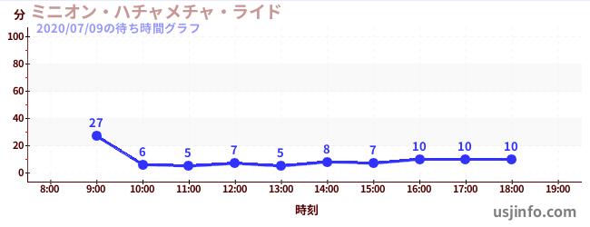 • ミニオン・ハチャメチャ・ライド$B$N(B2020年07月09日の待ち時間
