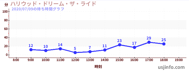 • ハリウッド・ドリーム・ザ・ライド$B$N(B2020年07月09日の待ち時間