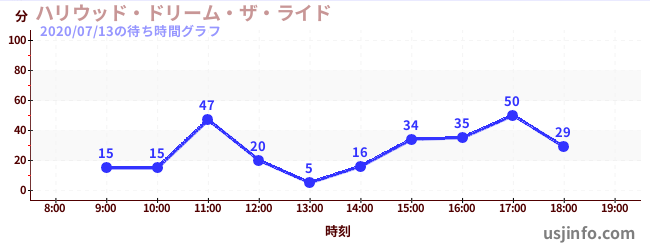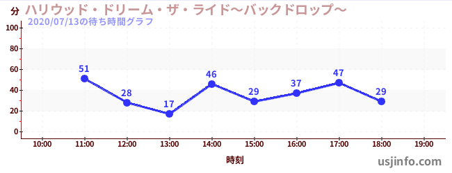 • ハリウッド・ドリーム・ザ・ライド〜バックドロップ〜$B$N(B2020年07月13日の待ち時間
