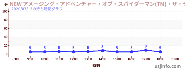 • NEW アメージング・アドベンチャー・オブ・スパイダーマン(TM)・ザ・ライド 4K3D$B$N(B2020年07月13日の待ち時間
