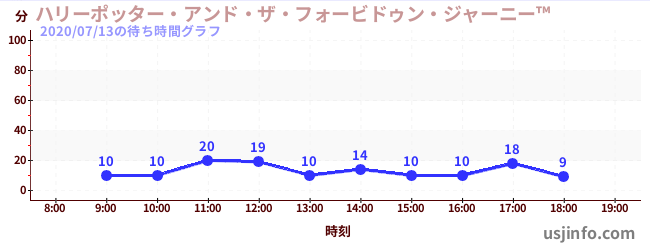• ハリーポッター・アンド・ザ・フォービドゥン・ジャーニー™$B$N(B2020年07月13日の待ち時間