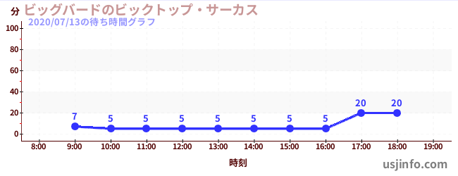 • ビッグバードのビックトップ・サーカス$B$N(B2020年07月13日の待ち時間