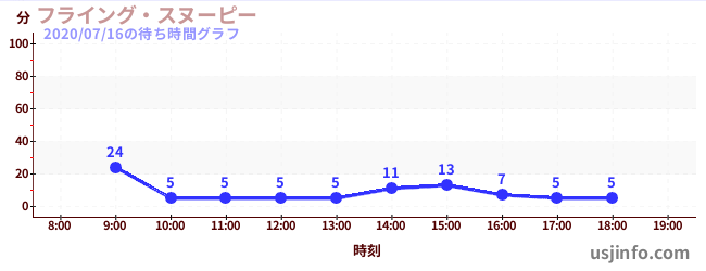 • フライング・スヌーピー$B$N(B2020年07月16日の待ち時間