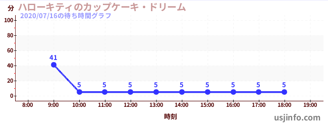 • ハローキティのカップケーキ・ドリーム$B$N(B2020年07月16日の待ち時間
