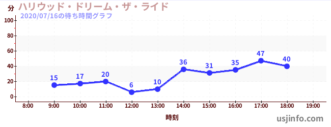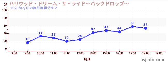 • ハリウッド・ドリーム・ザ・ライド〜バックドロップ〜$B$N(B2020年07月16日の待ち時間