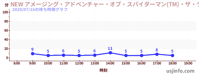 • NEW アメージング・アドベンチャー・オブ・スパイダーマン(TM)・ザ・ライド 4K3D$B$N(B2020年07月16日の待ち時間