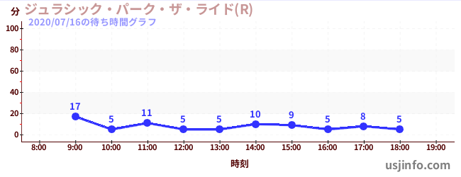• ジュラシック・パーク・ザ・ライド(R)$B$N(B2020年07月16日の待ち時間