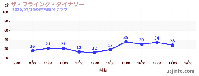 • ザ・フライング・ダイナソー$B$N(B2020年07月16日の待ち時間