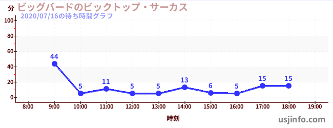 • ビッグバードのビックトップ・サーカス$B$N(B2020年07月16日の待ち時間
