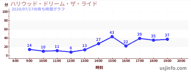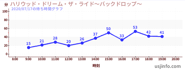• ハリウッド・ドリーム・ザ・ライド〜バックドロップ〜$B$N(B2020年07月17日の待ち時間