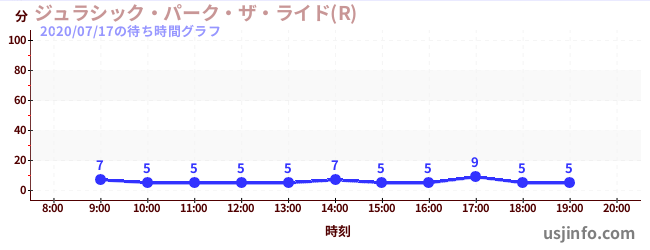 • ジュラシック・パーク・ザ・ライド(R)$B$N(B2020年07月17日の待ち時間