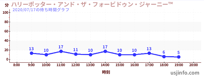 • ハリーポッター・アンド・ザ・フォービドゥン・ジャーニー™$B$N(B2020年07月17日の待ち時間