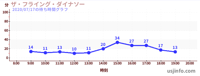 • ザ・フライング・ダイナソー$B$N(B2020年07月17日の待ち時間
