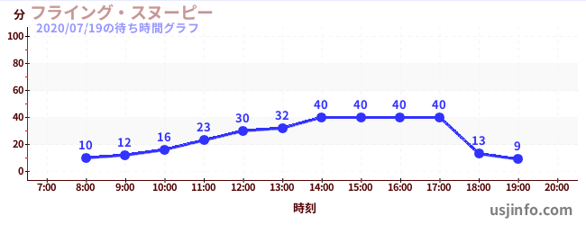 • フライング・スヌーピー$B$N(B2020年07月19日の待ち時間