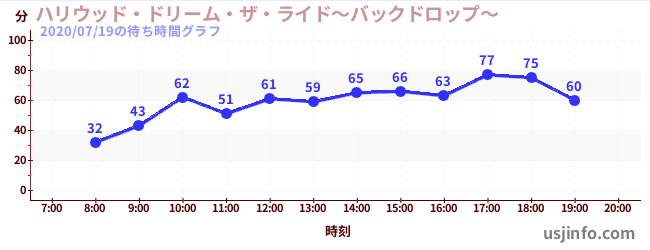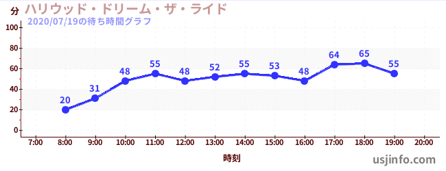 • ハリウッド・ドリーム・ザ・ライド〜バックドロップ〜$B$N(B2020年07月19日の待ち時間