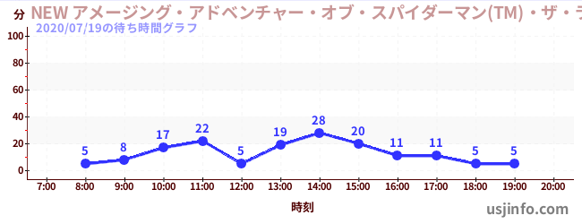 • NEW アメージング・アドベンチャー・オブ・スパイダーマン(TM)・ザ・ライド 4K3D$B$N(B2020年07月19日の待ち時間