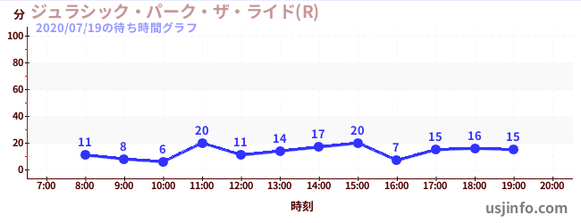 • ジュラシック・パーク・ザ・ライド(R)$B$N(B2020年07月19日の待ち時間