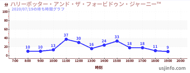 • ハリーポッター・アンド・ザ・フォービドゥン・ジャーニー™$B$N(B2020年07月19日の待ち時間