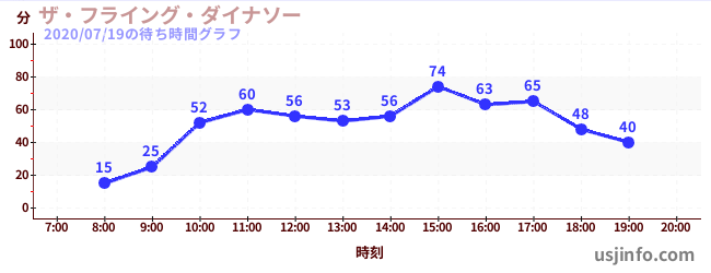 • ザ・フライング・ダイナソー$B$N(B2020年07月19日の待ち時間