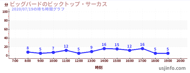 • ビッグバードのビックトップ・サーカス$B$N(B2020年07月19日の待ち時間