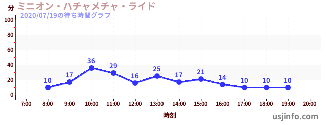 • ミニオン・ハチャメチャ・ライド$B$N(B2020年07月19日の待ち時間