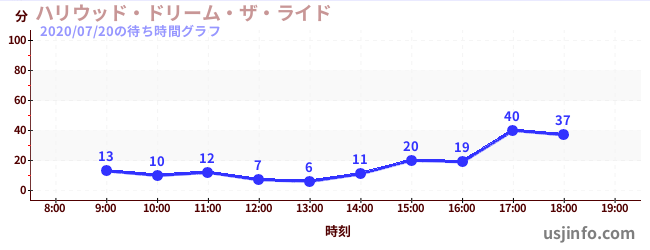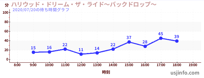 • ハリウッド・ドリーム・ザ・ライド〜バックドロップ〜$B$N(B2020年07月20日の待ち時間