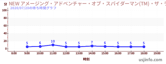 • NEW アメージング・アドベンチャー・オブ・スパイダーマン(TM)・ザ・ライド 4K3D$B$N(B2020年07月20日の待ち時間