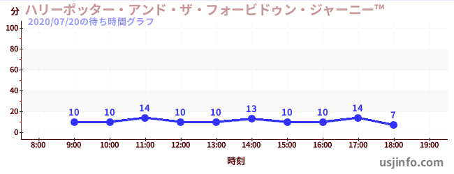 • ハリーポッター・アンド・ザ・フォービドゥン・ジャーニー™$B$N(B2020年07月20日の待ち時間